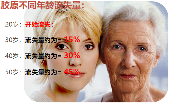 胶原蛋白是人体内最多的一种蛋白质,占全身蛋白质的30%,骨骼离不开胶原蛋白,胶原蛋白相当于骨骼这栋建筑的钢筋,既有弹性又有柔韧性。胃肠道健康离不开胶原蛋白。血管的主要原料中90%都是胶原蛋白,它决定血管的弹性和柔韧性.随着年龄的增长,胶原蛋白会逐渐的流失,从而导致支撑皮肤的胶原肽键和弹力网断裂,皮肤组织被氧化、萎缩、塌陷,肌肤就会出现干燥、皱纹、松弛无弹性等衰老现象,所以,女性补充胶原蛋白是一种有效的抗衰老方法。