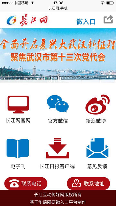 近年来,长江网加快推进新媒体融合发展,发力“两微一端”,形成了网站、app以及官方微博、微信矩阵为主体的新媒体方阵。此次,通过与“.手机”注册局的技术合作,长江网“.手机”微入口界面设置了“官方微信”、“官方微博”、“数字报”、“APP客户端”等诸多功能,基本涵盖了长江网旗下的新媒体业务。