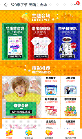 母婴人群作为天猫最重要的人群之一,此次520天猫亲子节,在人群运营及消费场景上,也下足功夫,首次尝试承接三大趋势的主题会场-亲子科技趴、品质育萌娃,潮宝配辣妈。同时联手天猫国际官方直营、天猫超市,共同为品牌和用户呈现了一场精彩绝伦的盛宴。