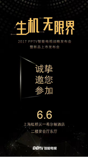 近日,PPTV智能电视宣布将于6月6日在上海元一希尔顿酒店召开“2017 PPTV智能电视战略发布会暨新品上市发布会”。
