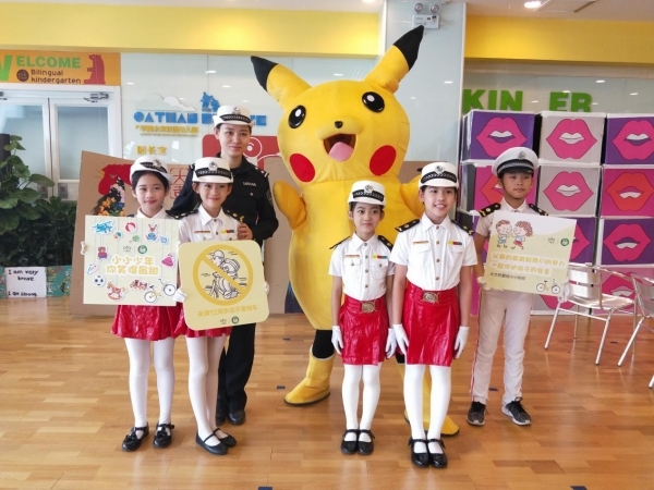 ofo小黄车与小朋友们热情互动,萌宠皮卡丘手举ofo交通安全卡通宣传板,向小朋友们宣传安全交通出行的相关知识:“未满十二岁的小朋友不可以骑单车,家长在骑行时不可以将孩子放在车筐中”,小朋友们很快记住了并齐声喊道:“跟ofo小黄车一起,尊法守规明礼、安全文明出行”。通过ofo“萌神”皮卡丘的有趣讲解,给孩子们带去了一堂丰富多彩的交通安全课。